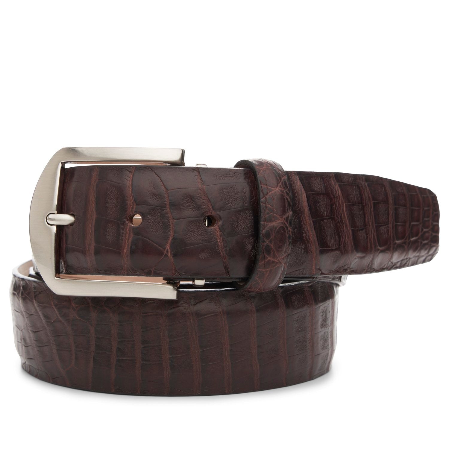 Little needs to be said with leather as beautiful as this 40-millimeter Caiman Crocodile. With the texture and unique pattern being the focal point, we chose not to stitch these classic belts. Styled in charcoal with matching edge.